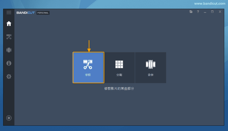 在您的電腦上啟動 Bandicut 應用程式。 - 選取「修剪」模式