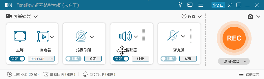 FonePaw PC Screen Recorder 是一款 電腦螢幕錄影軟體,支援多種檔案格式。使用者可將 整個桌面或指定區域 錄製成影片,也可同時錄製 電腦系統音效、麥克風聲音,並支援 螢幕截圖 功能。影片格式方面,除了常見的 MP4 之外,也支援 WMV、MOV、F4V、MPEG-TS、WebM、GIF 等多種格式。即使是免費版本,每次仍可錄製 最長 5 分鐘 的螢幕內容,對於短時間錄製需求相當實用。